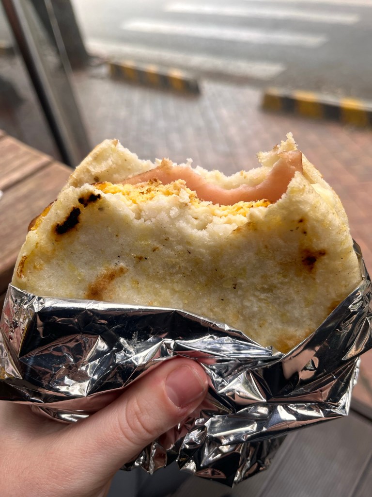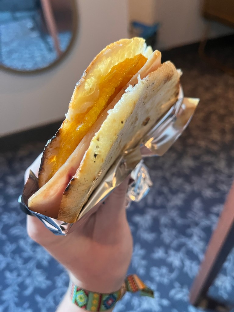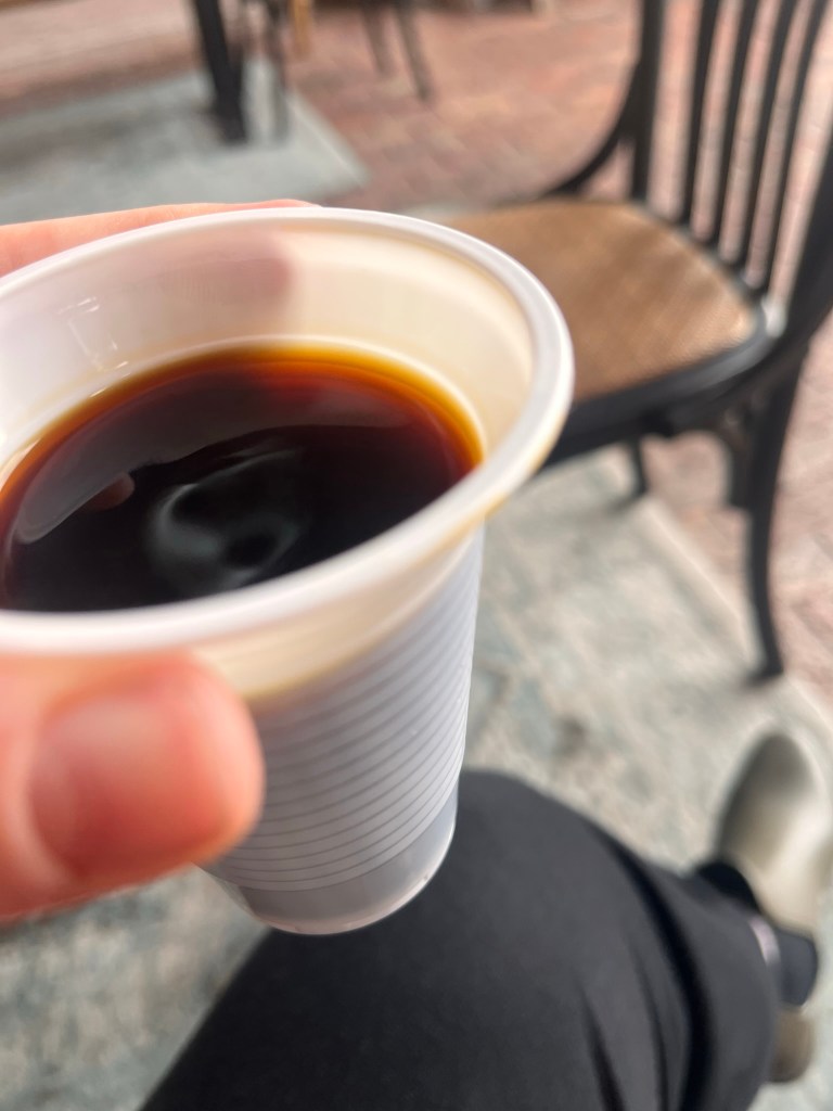 - Croissant sandwich with ham + espresso from Azahara Coffee. This place was 10/10 find, and one of the only places open early on a Sunday morning.