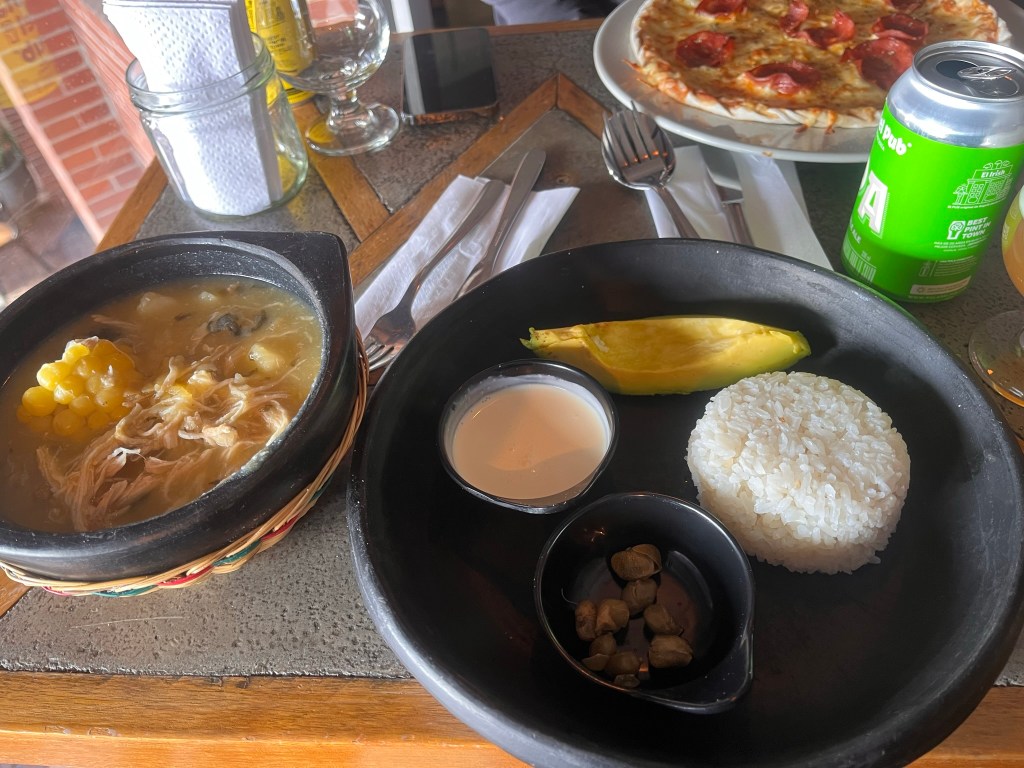 Food from Selinas including: Ajiaco, pizza (this was Jon not me), many many many menú del día!