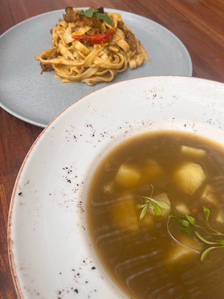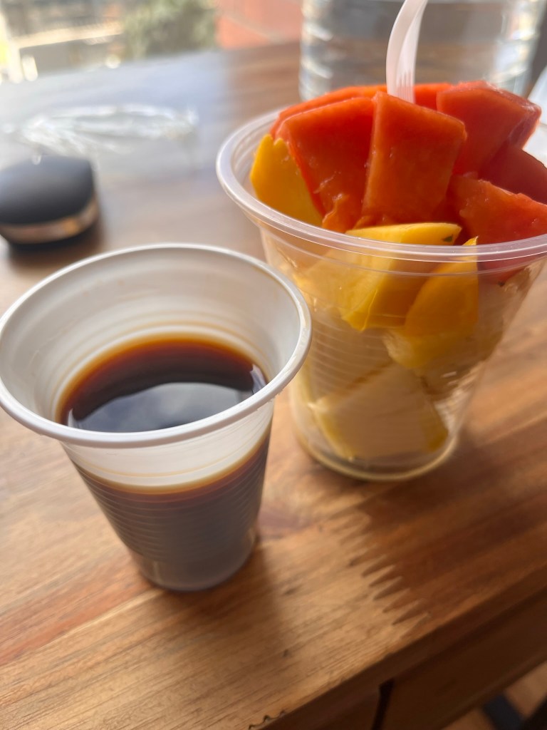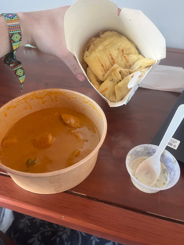 From the Food Hall: I was in Bogota during my dad’s birthday, I celebrated remotely with a tiny birthday cake from Luisa’s Postres. I was craving Pad Thai which led me to an Asian restaurant (KO’s or something like that) – unfortunately, they were out of Pad Thai so I ordered Chicken Tikka Masala – served a little differently than typical in America.