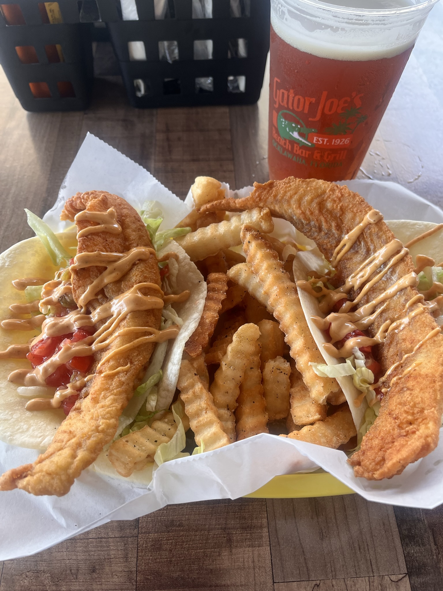 A 5min walk down the road on the water sits Gator Joe’s Restaurant and Bar. We ate gator bites and fish tacos. Super great spot for a drink and live music.