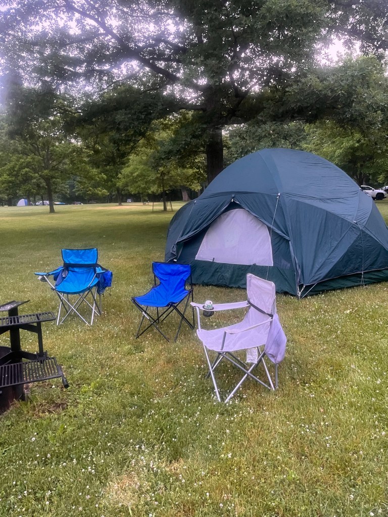 Site 113 is located on the inside corner of the loop, directly across from the primitive bathroom. The site was slightly larger than some of the others around the loop and features a large tree for shade. Although it is close to the bathroom, we couldn’t smell much (note this for later when we talk about sites we didn’t like). Park on the grass. Access to West Lake Trail & Six Pines Trail from the Six Pines Campsite loop. We liked that Six Pines was a smaller campground than the main loop and was more spacious for tenting. My mom would have argued that she missed out on the modern bathrooms that the main campsite has.