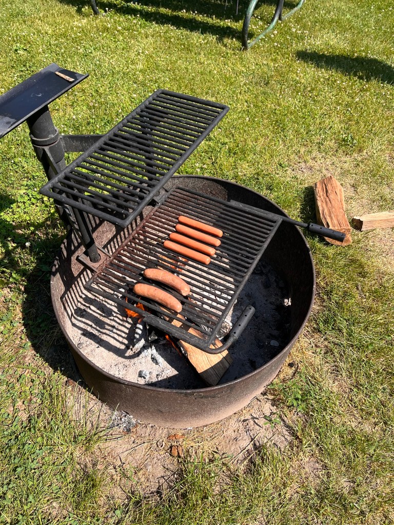 Saturday Dinner: Hotdogs on the fire (8/10, classic but boring) w/ instant mashed potatoes (9/10 very easy and tasty)